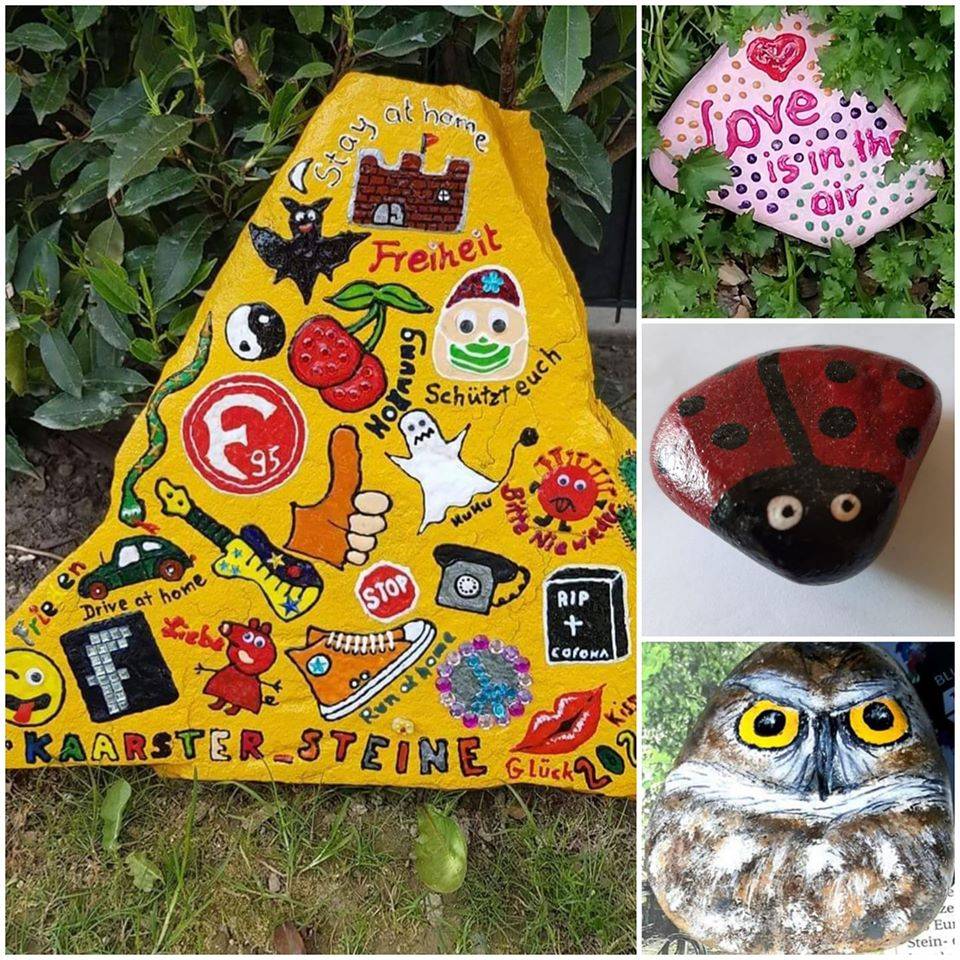Finden, freuen, posten – so lautet die Idee hinter dem Trend. Wie Röttgen herausfand, gab es schon für viele Städte entsprechende Gruppen, wo man seine Funde präsentieren konnte, doch für Kaarst noch nicht. So gründete sie Ende Februar die Facebookgruppe „Kaarster_Steine...“, die mittlerweile über 400 Mitglieder hat. „Ich hätte nicht gedacht, dass so schnell so viele Mitglieder zusammenkommen“, freut sich die Initiatorin über das positive Feedback. Immer mehr Kaarster packt das Steinefieber, täglich werden die selbstbemalten oder gefundenen Schätze in der Gruppe präsentiert, bevor sie auf die Reise geschickt werden. Richtige kleine Kunstwerke sind dabei.
