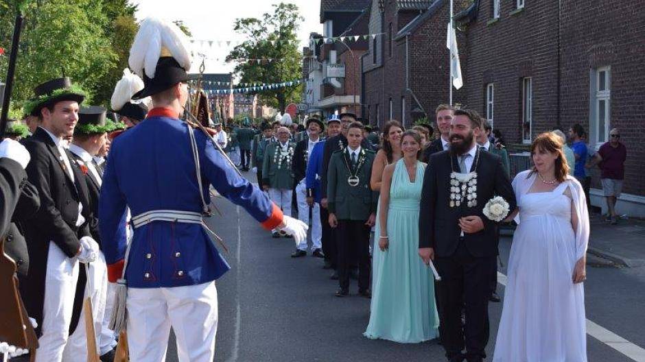 Die Stimmung war bestens, Königspaar und Schützen präsentierten sich in allerbester Laune. Das lag vielleicht auch am Frühschoppen, der passend auf das Montagsprogramm des Holzbüttgener Schützenfestes eingestimmt hatte.