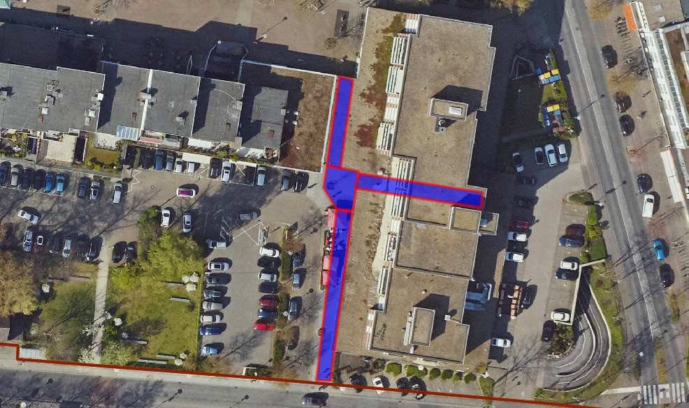 2. den Fußweg von der Alten Heerstraße ins Maubiszentrum entlang des Döner-Imbisses, der Bäckerei und des Schumachers mit den angrenzenden Passagen.
