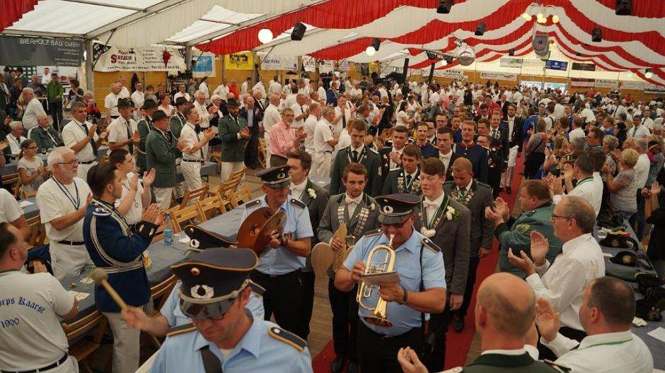Der 22-Jährige zielte zum ersten Mal auf den Königsvogel - und er konnte sein Glück kaum fassen, als das hölzerne Federvieh fiel. Sichtlich ergriffen freute er sich im Festzelt mit seinem Ministern Henri Sandt (21) und Christian Hügen (21) auf das Jahr der Regentschaft. Ob er 2017 zu den "großen" Scheibenschützen wechselt, steht noch nicht fest: Eigentlich möchte Patrick Scholz gemeinsam mit Christian Hügen auf Weltreise gehen.