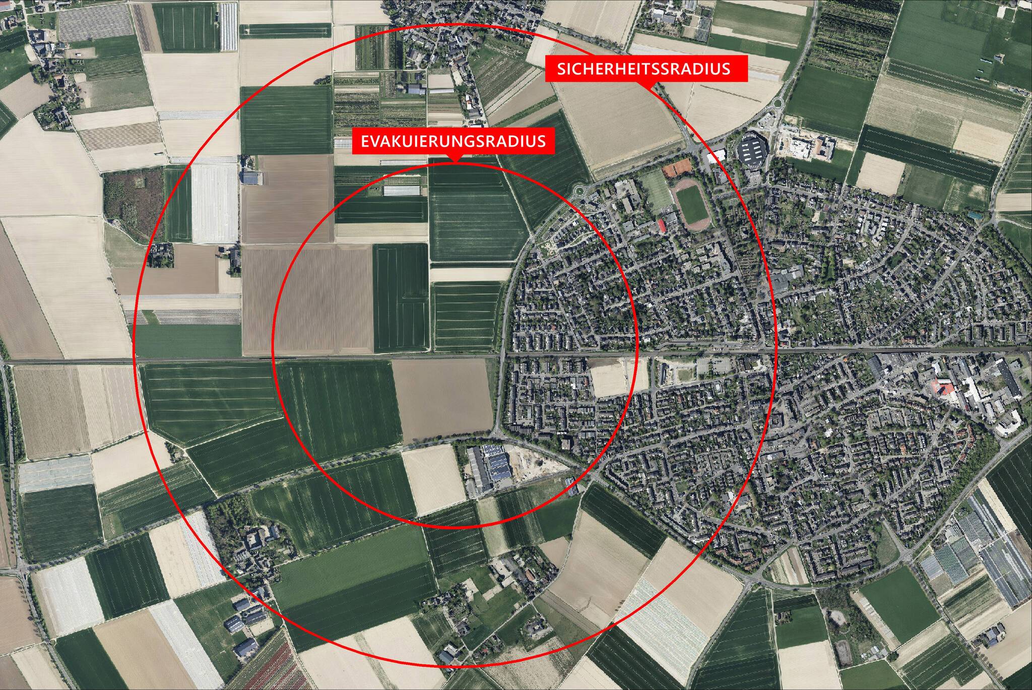 Innerhalb des inneren Radius rund um die Fundstelle dürfen sich zum Zeitpunkt der Entschärfung keine Personen aufhalten. Im äußeren Radius ist ein luftschutzmäßiges Verhalten notwendig. Dies bedeutet: