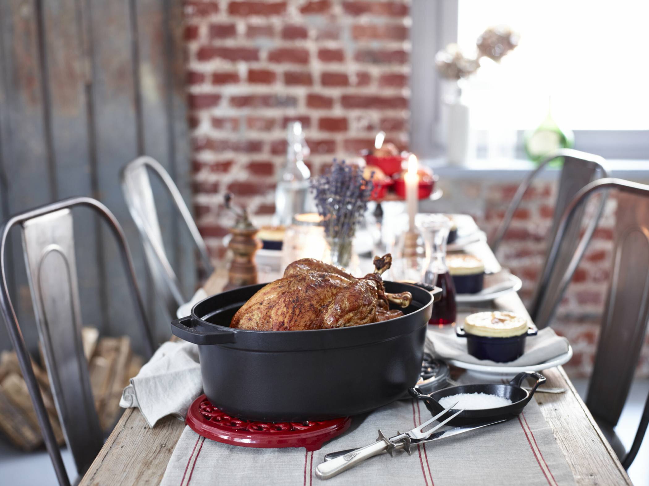 In der ovalen Cocotte des französischen Traditionsherstellers Staub bleibt Geflügel zart und saftig.
