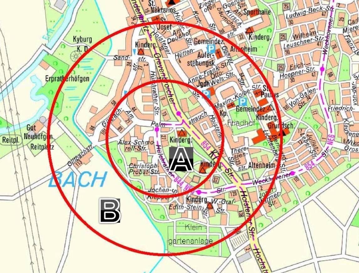 Betroffen waren rund 2.800 Anwohner, mehrere Kindergärten, eine Grundschule, eine Kleingartenanlage und einige kleinere Geschäfte und Betriebe. Die Polizei sperrte gemeinsam mit dem Ordnungsamt und dem Amt für Verkehrsangelegenheiten die Zufahrten in das Wohngebiet. Davon betroffen waren die Hoistener Straße, Grevenbroicher Straße, Am Lindenplaz, die Weckhovener Straße, Hülchrather Straße, Gohrer Straße, Lichtenberg Straße sowie zahlreiche Anwohnerstraßen.