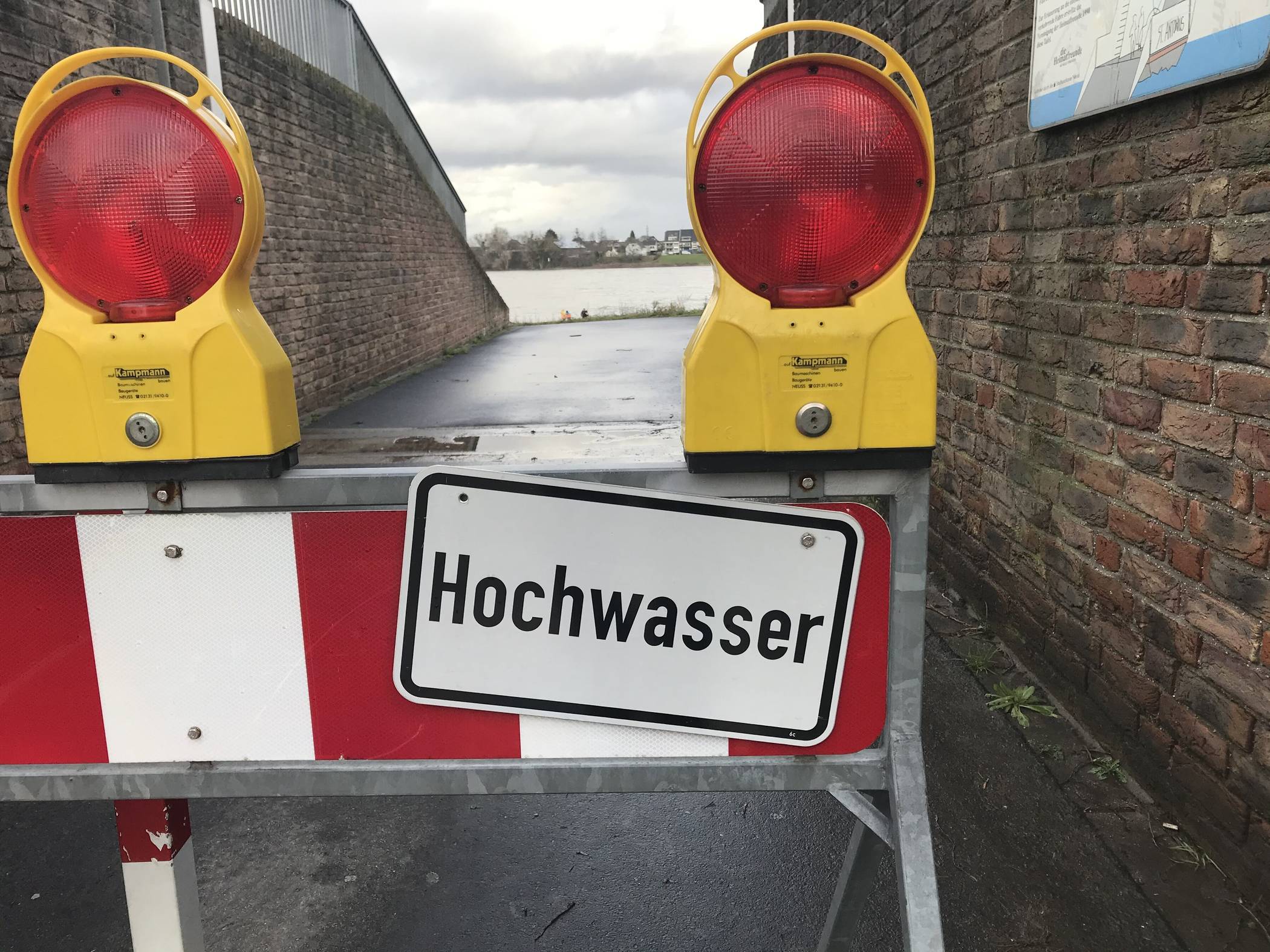 Steigt das Wasser, tritt der Hochwasserdienst in Aktion. Bei einem Wasserstand von acht Metern, gemessen am Pegel Düsseldorf, tritt der Einsatzstab zusammen. Ab 8,30 Meter wird eine rund um die Uhr besetzte Hochwasserschutzzentrale eingerichtet. Bei 8,65 Meter Wasserhöhe werden erste Deichtore geschlossen. Die aktive Deichwacht mit regelmäßigen Begehungen des Deiches beginnt bei 9,70 Meter.