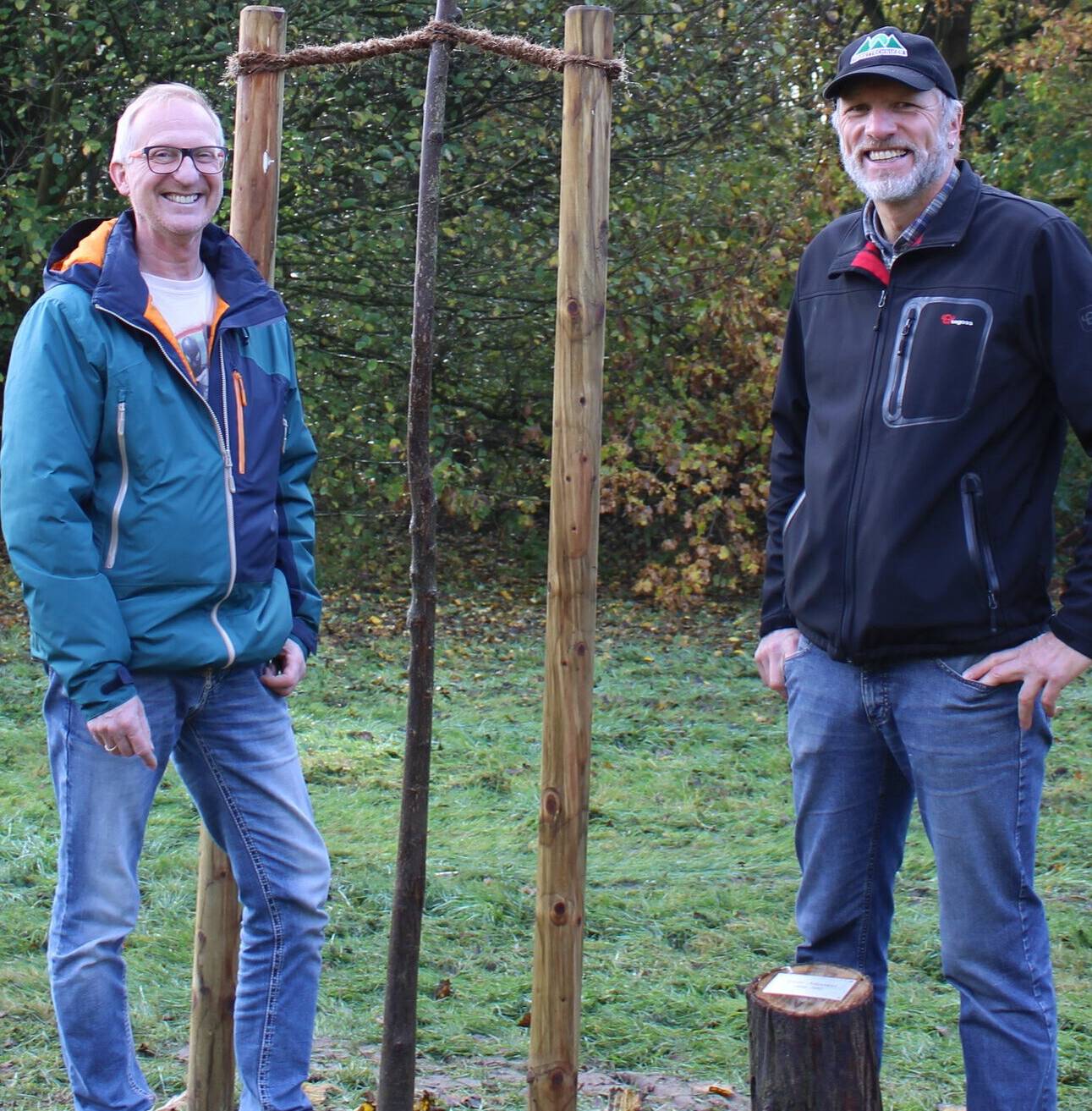 An diesem Standort dürfen nur heimische Hölzer gepflanzt werden – und so stehen in Norf nun eine Ulme, eine Blumenesche, eine Purpurerle, zwei Eichen und eine Esche mehr. Vor den Bäumen steht jeweils ein Pfosten, der mit einer Plakette auf den jeweiligen Stifter hinweist.