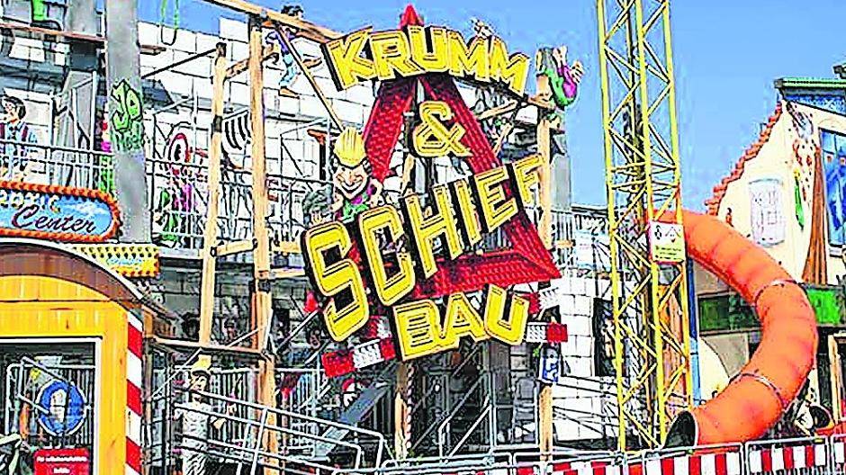 Die lustigste Baustelle der Welt — so beschreiben es zumindest die Schausteller selbst — kommt nach Neuss. Es handelt sich dabei um ein komplett thematisiertes Laufgeschäft, das auf 23 Metern Front viele Hingucker und ebenso viele Effekte bietet. Die Besucher erwartet auf mehreren Etagen ein Hindernis-Parcours mit etlichen Stationen, ein Glas- und Spiegelirrgarten, eine Spiralrutsche und vieles mehr. Für einen markanten Eindruck sorgt der 13 Meter hohe Baukran, der schwenkbar ist. Ebenso laden viele lustige Dekoelemente zum Verweilen auf einer Baustelle ein, deren Betreten ausdrücklich erwünscht ist.