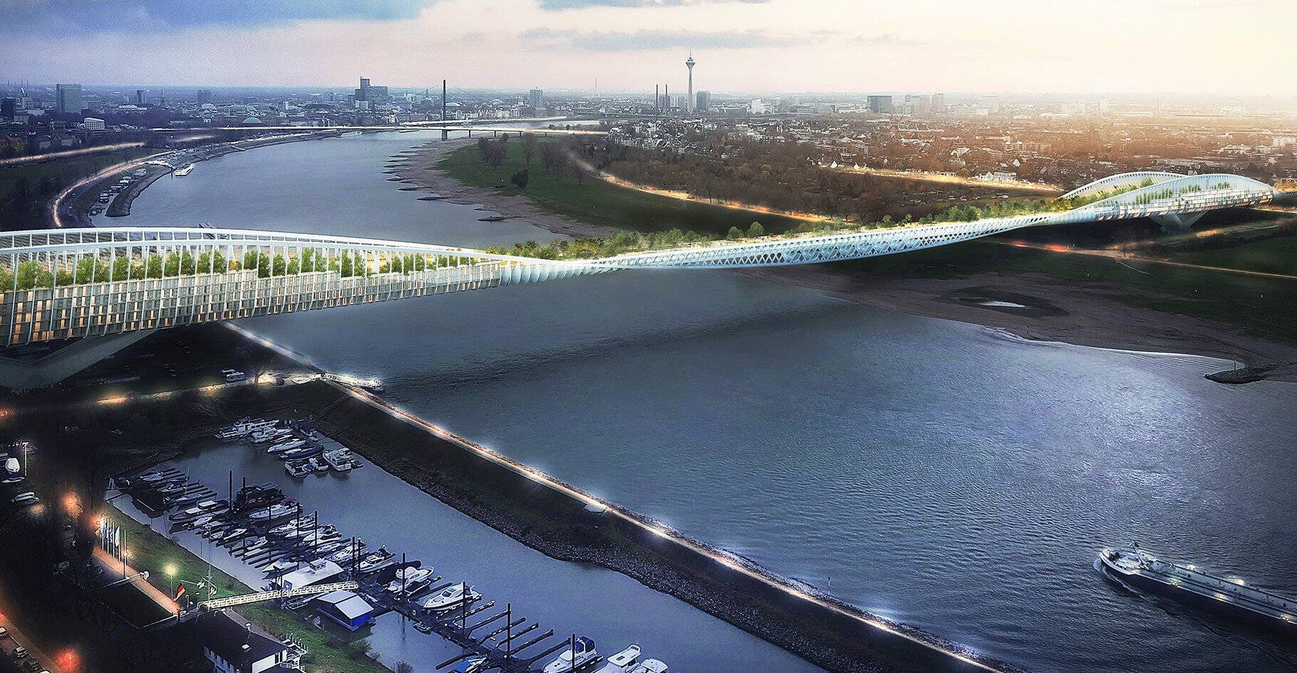 Bis jetzt ist das Ganze nicht mehr als nur ein Gedankenspiel. Marcel Abel, Geschäftsführender Direktor und Niederlassungsleiter JLL Düsseldorf: „Die Brücke muss ohnehin neu gebaut werden, doch heute lässt sich deutlich mehr daraus machen als nur ein Verkehrsweg – ein nachhaltiges Bauwerk, das den Menschen qualitative Fläche in optimaler Lage schenkt.“