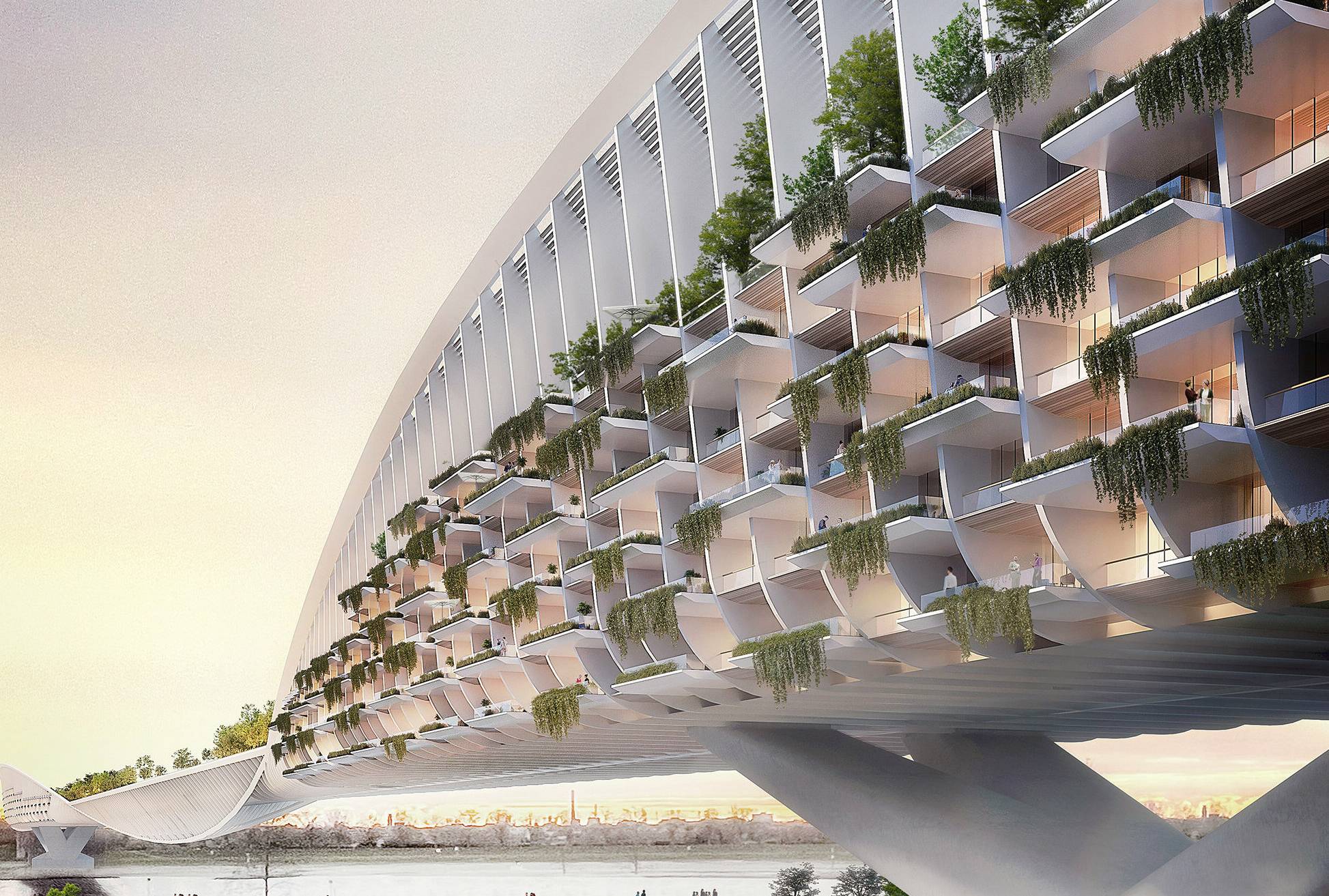 Die „Green Bridge“ soll vielfältige Möglichkeiten für eine langfristige Belebung bieten. Rund 400 Wohneinheiten vom Mini-Apartment bis zur Maisonette-Wohnung sollen dort untergebracht werden, öffentlich geförderter und freifinanzierter Wohnraum sollen sich abwechseln, lebendige, generationenübergreifende Nachbarschaften ganz nah am oder direkt über dem Wasser. Außerdem ist ein Hotel mit rund 350 Zimmern inklusive Spa und Panoramarestaurant geplant.