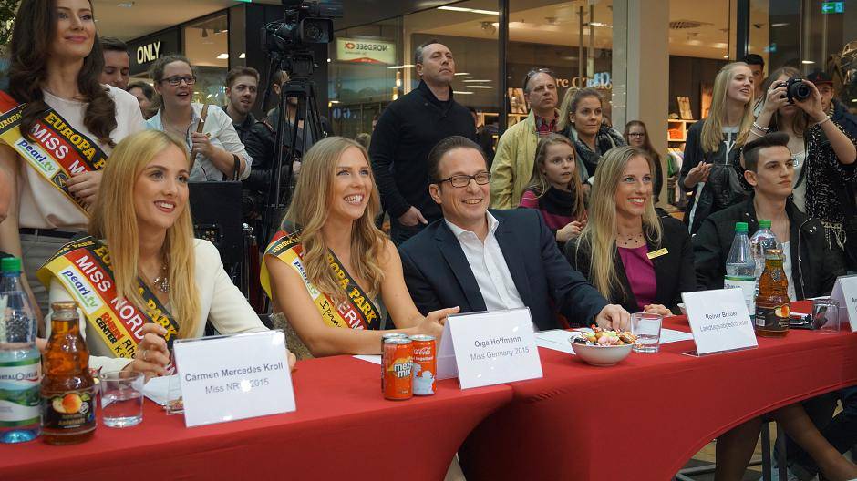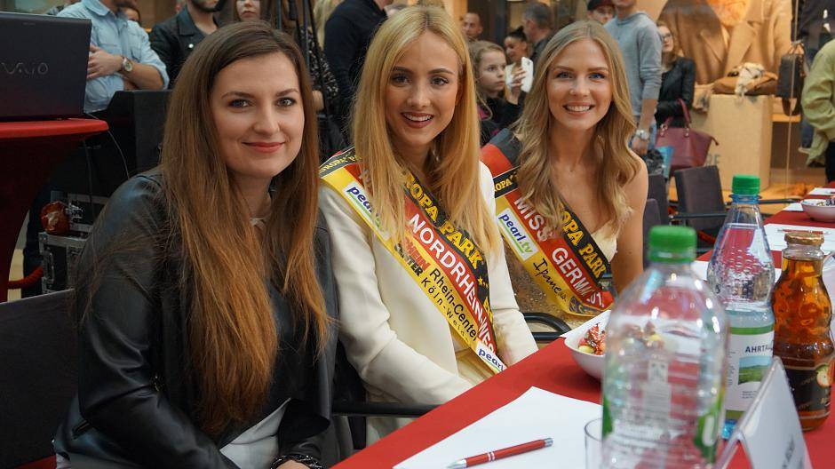 Wer zeigt sich denn da neben Miss Germany und Center Managerin Andrea Schwenke? Fabienne Rothe erreichte bei der neunten Staffel von "Deutschland sucht den Superstar" den vierten Platz - jetzt arbeitet sie im Rheinpark-Center.
