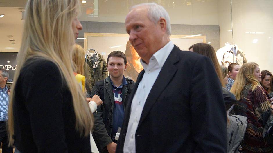 Bürgermeisterkandidat Reiner Breuer (SPD) schießt ein paar Erinnerungsfotos.