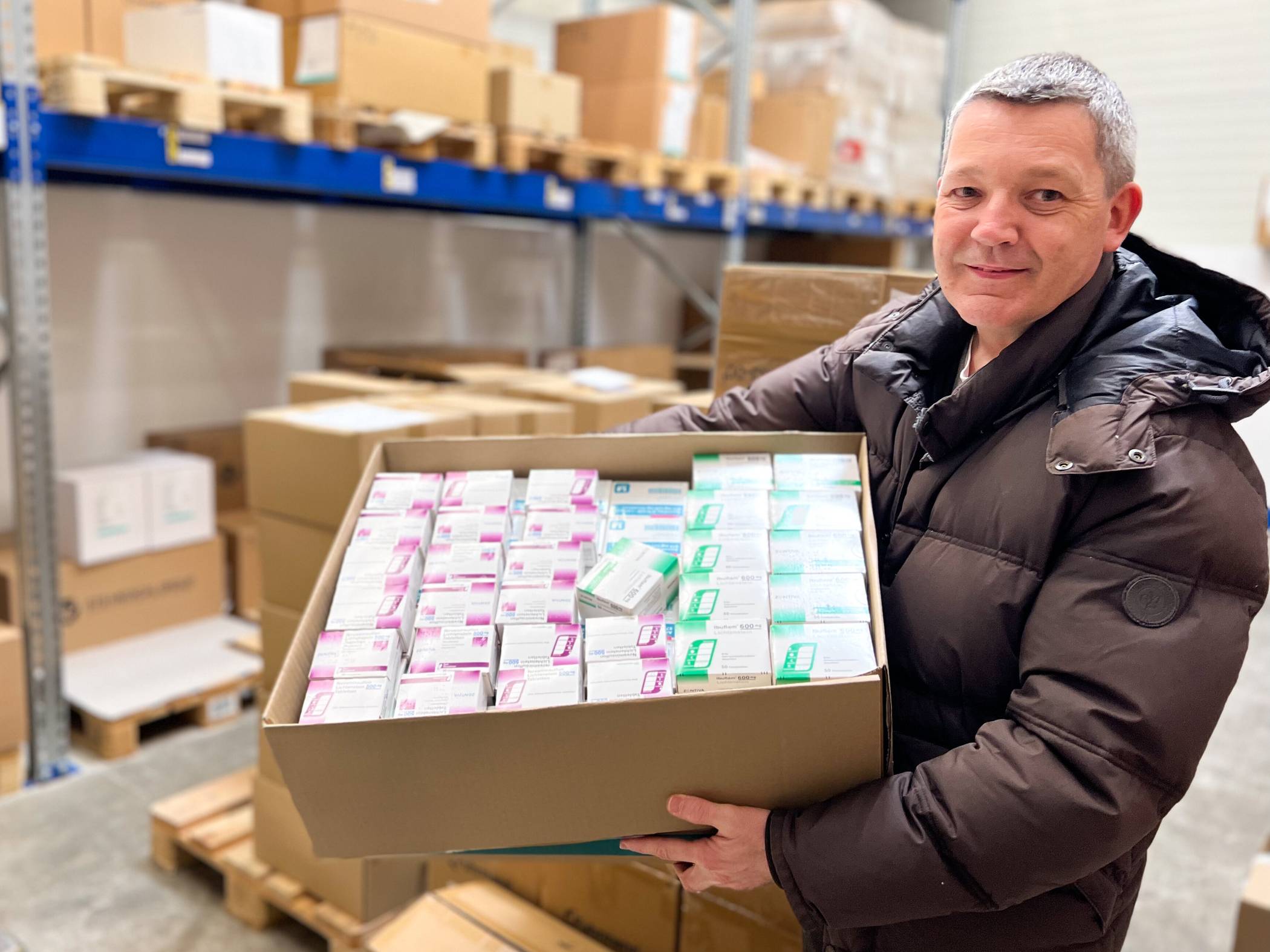 „Die Bilder, die wir in diesen Tagen in den Nachrichten sehen, sind nur schwer zu ertragen“, sagt Jürgen Aretz, Leiter der Abteilung Einkauf und Logistik. „Uns ist es ein Herzensanliegen in dieser Situation nicht wegzuschauen und stattdessen zu helfen.“ Innerhalb weniger Stunden organisierten er und seine Kolleginnen aus dem Einkauf alles, was die Ukrainer derzeit benötigen können. Dazu zählen unter anderem Venenstauer, Wundpflaster, Kompressen, Rettungstücher oder Desinfektionsmittel. „Eben all das, womit verwundete Menschen medizinisch versorgt werden können“, so Aretz.