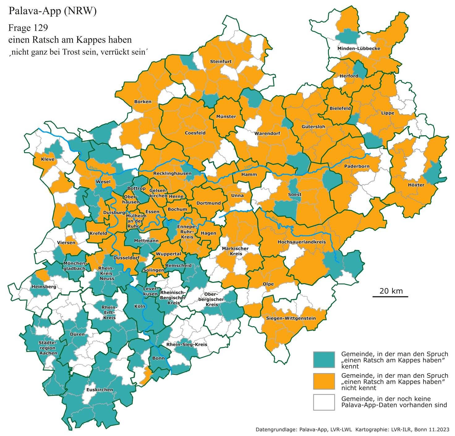 Um möglichst authentische Sprachdaten zu erhalten, sind die Wissenschaftler der Landschaftsverbände auf die Unterstützung der Menschen in Nordrhein-Westfalen angewiesen. „Bis jetzt haben bereits über 4.000 Leute mitgemacht. Doch wie man auf der Sprachkarte zur Kenntnis der Redewendung ‚einen Ratsch am Kappes haben‘ sehen kann, sind einige Städte und Gemeinden noch ‚weiße Flecken‘“, erläutert LVR-Sprachforscherin Rein.