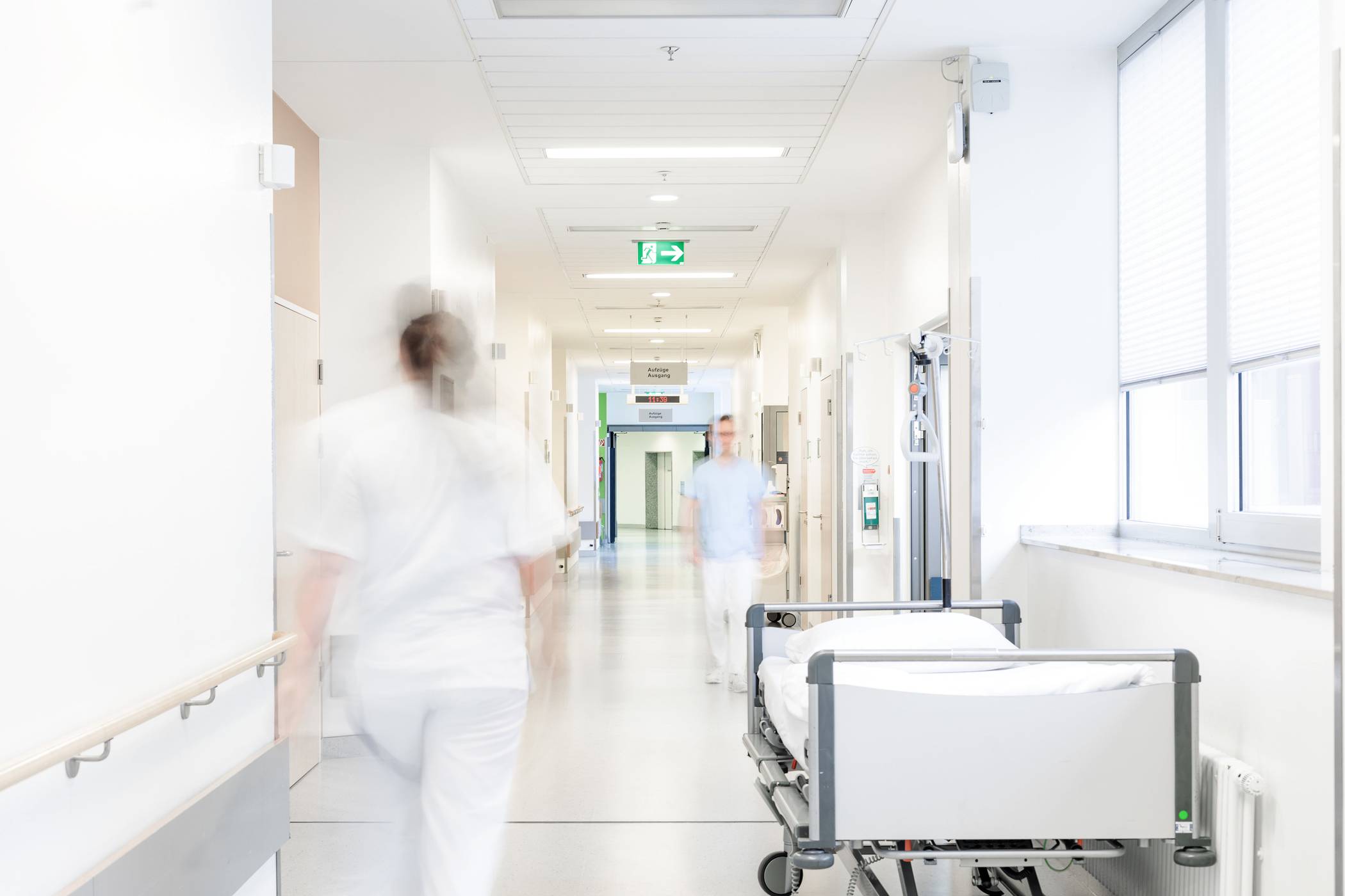 Die Patientinnen und Patienten liegen auf einer eigens eingerichteten Isolationsstation – oder, wenn ihr Zustand es erfordert, separat auf der Intensivstation. Das gilt auch für Patienten mit einem Covid-19-Verdacht. Damit andere Patienten sich auf keinen Fall anstecken können, hat die Klinik viele weitere Maßnahmen eingeführt: Alle Patienten und Mitarbeiter tragen einen Mundschutz, in den Zimmern ist ausreichend Platz, um einen großen Abstand zwischen den Betten und Patienten einzuhalten, und ein Schnelltest von Patienten mit Symptomen wie Fieber, Husten oder Unwohlsein, gehört ebenfalls zum umfangreichen Maßnahmenpaket. Auch für Diagnostik wie Röntgenuntersuchungen treffen Menschen mit und ohne das Virus nicht aufeinander. Patienten mit Corona haben zum Ende des Tages ein eigenes Zeitfenster oder werden mobil in ihrem Zimmer geröntgt. Danach werden Raum und Geräte intensiv desinfiziert.