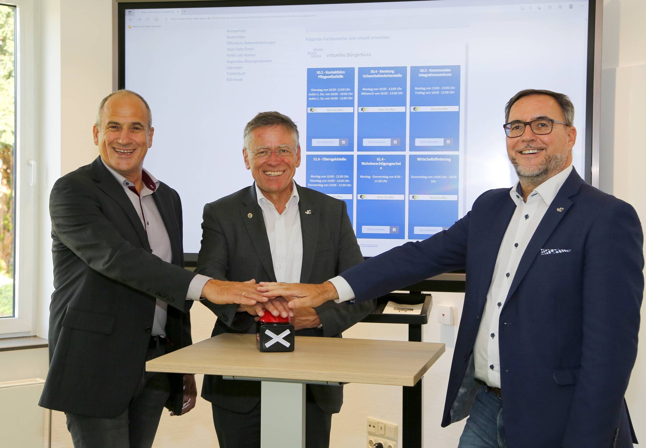 Über die Startseite des Rhein-Kreises Neuss im Internet unter www.rhein-kreis-neuss.de finden Interessierte eine Übersicht über die im virtuellen Bürgerbüro angebotenen Dienstleistungen. Außerdem ist dort zu sehen, ob ein Büro aktuell geöffnet hat oder ob sich der zuständige Ansprechpartner gerade in einem Termin befindet. Sobald ein bestimmter Bereich ausgewählt ist, kann man sich in einen virtuellen Wartebereich einwählen.