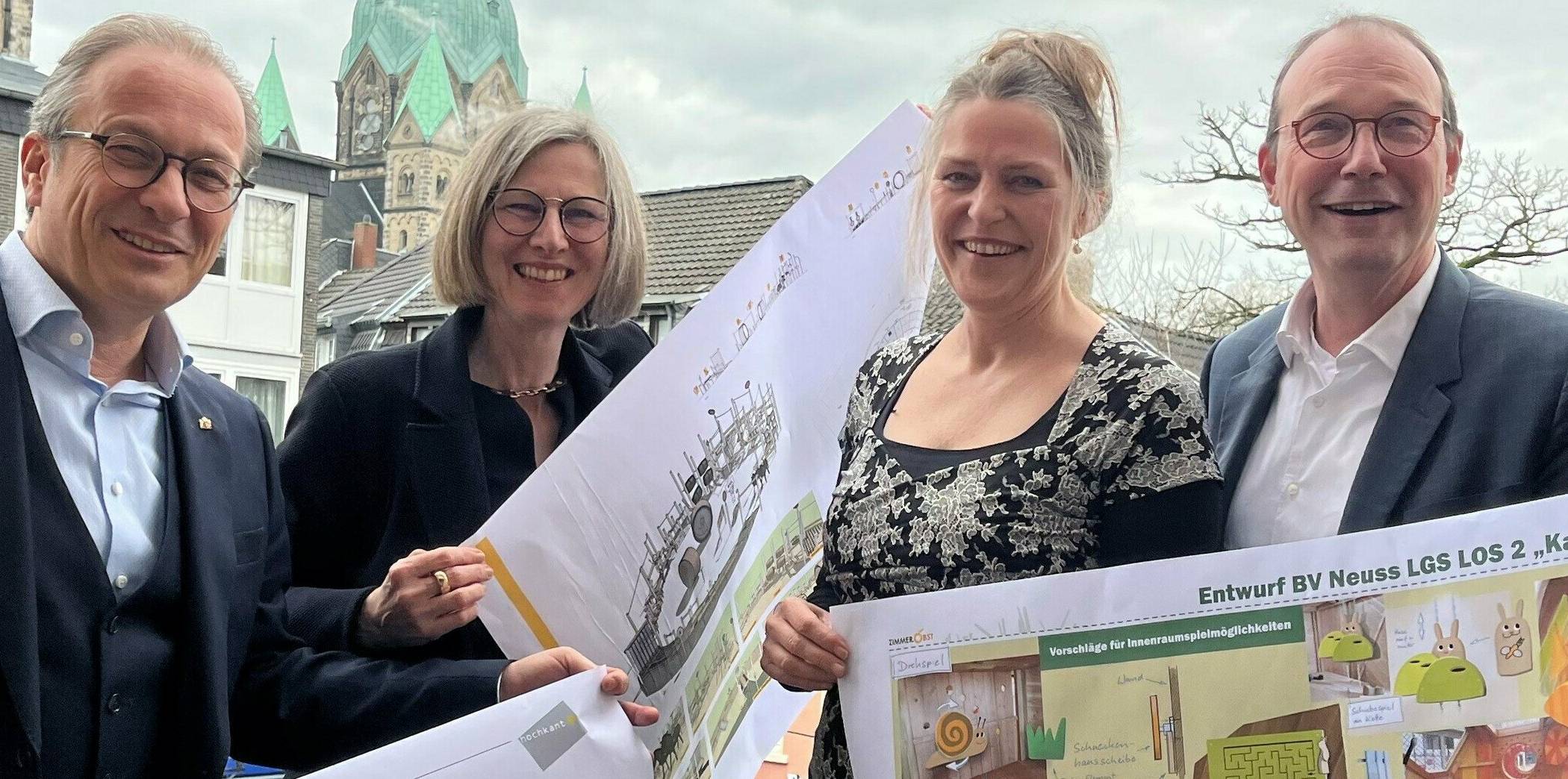 Am 20. Januar wurden nun also die Aufträge an die Spielgerätehersteller Hochkant GmbH aus Gestsratz (Römer-Spielplatz), Zimmer.Obst GmbH aus Spreenhagen (Kaninchenbau) und ESF Emsland Spiel- und Freizeitgeräte GmbH aus Geeste (Rennbahn-Spielplatz) vergeben, die jetzt die Spielgeräte für die Neusser Kids bauen. Im Herbst 2025 soll mit der Montage der Spielplatzanlagen begonnen werden, die dauerhaft auf dem Gelände verbleiben und erstmalig zum Start der Landesgartenschau 2026 erlebbar werden.