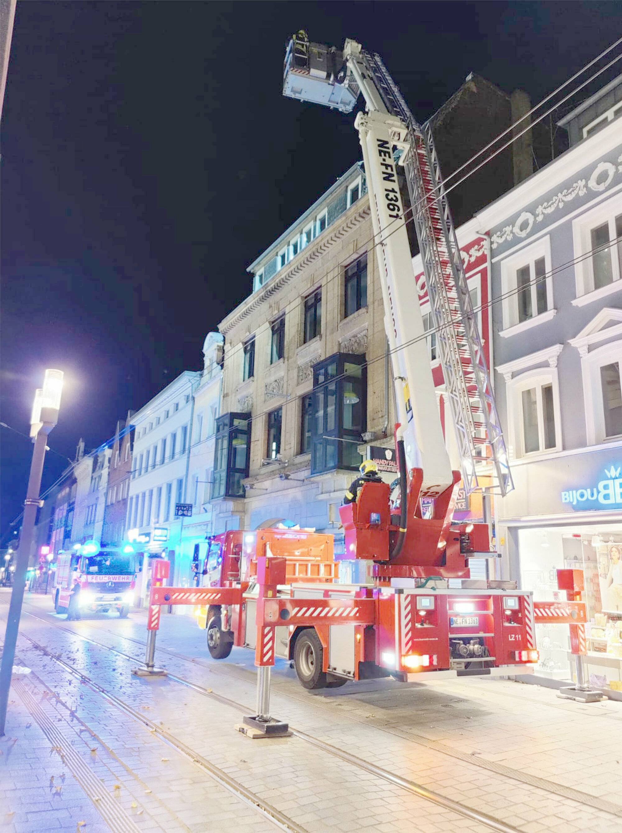 Die Neuser Feuerwehr dankt allen Einsatzkräften für die gute Zusammenarbeit danken und erinnert daran, das etwa 80 Prozent aller eingesetzten Kräfte ehrenamtlich im Einsatz waren und dem Sturm getrotzt haben. Danke auch an das THW Neuss für die gute Zusammenarbeit an der Einsatzstelle in Holzheim, der Polizei im Rhein-Kreis-Neuss für die gute Zusammenarbeit an allen gemeinsamen Einsatzstellen sowie dem Malteser Hilfsdienst für die Verpflegung der 123 eingesetzten Kräfte der Feuerwehr Neuss.